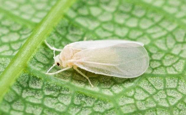 Это насекомое имеет размер 1,5-3 мм и имеет характерный белый окрас крыльев. Если вы заметили несколько представителей данного вида у себя в гроубоксе, просто потрясите растения. Оставшиеся особи слетят с нижней поверхности листьев, и перед вами откроется полная картина происходящего. Листья, пораженные этим вредителем, сначала покрываются белым налетом, а потом постепенно темнеют.