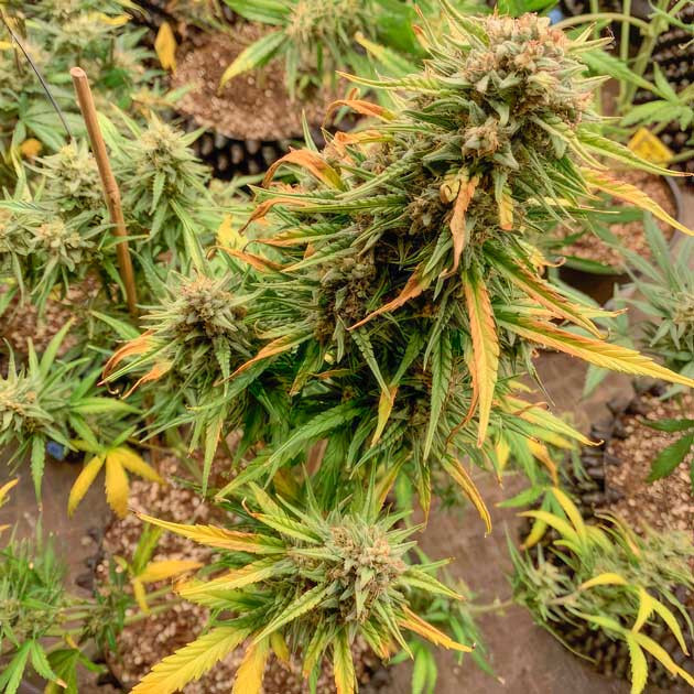 В процессе 9-й недели Vanilla Latte Auto стремительно переоделась в осенний костюм. Созревающий куст приобрел желтые и оранжевые краски. Листочки начали подсыхать, а проверка трихом показала, что урожай практически готов к сбору. В итоге харвест провел на 65-й день цикла.