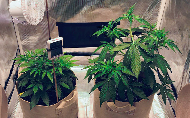 Первая неделя прошла без проблем, но к седьмому дню саженцы продемонстрировали разный темп развития. Тогда как одна растишка только начала формировать второй этаж, другая уже начала наращивать третий. Не знаю, с чем это связано, учитывая, что все условия для саженцев одинаковые. Что касается климата в палатке, то показатели такие: