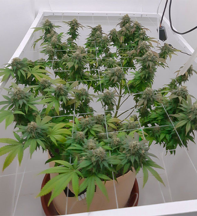 Вкус хороший, мягкий, эффект мощный и продолжительный, всё при ней, конечно. Воздействие довольно мягкое, как бы обволакивающее, есть приятные ощущения в теле – телесный стоун. Но чтобы получить заявленные 32 % ТГК и вес, надо очень хорошо кормить эту растиху. Вообще, для себя из этого грова я вынес очень много новой полезной информации, её ценность для меня значительно выше, чем небольшой полученный конечный вес. Новые растворы и дозировки удобрений испытал, впервые пользовался сеткой, по-другому под ней куст нужно стричь. Короче, я продолжаю учиться и идти к своим целям!