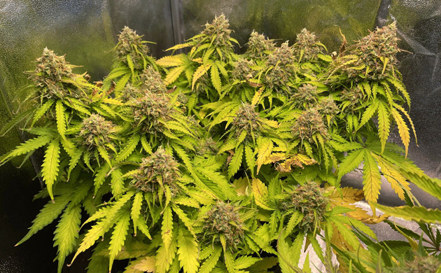 Всю 11-ю неделю я с удовольствием наблюдал, как Gelato дозревает, постепенно меняя цвет шишек. В соцветиях появлялись фиолетовые и пурпурные оттенки, волоски становились коричневыми, а количество янтарных трихом увеличивалось с каждым днём. Запах шишек был просто изумительным: сладкий сливочный аромат с дизельными нотками. Перед рубкой три дня не поливал кустик и на 74-й день от семки собрал урожай.