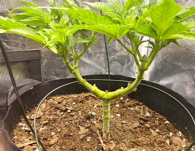 Рост куста конопли на четвертой неделе выращивания