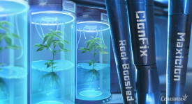 Так-с, начну с того, что мамка стоит в веге уже 5 месяцев, у неё своя отдельная палатка, к ней иногда заезжают разные соседи, а скоро я буду переводить её в цвет и ставить новый куст. Вооружившись канцелярским ножом, нарезал клонов. Подготовил штук 30, режу веточки с тремя узлами, затем высадил их в кокосовые таблетки и поставил на полочку к мамке. Спустя сутки отобрал 20 самых бодрых и поступил следующим образом. 10 из них были высажены в литровые ведерки с добавлением микоризы от Dynamyco. Другие 10 – в ведерки без микоризы. В этот раз я хочу наглядно посмотреть, насколько целесообразно использовать эти грибочки. В качестве субстрата использую кокос + перлит, 70/30.
