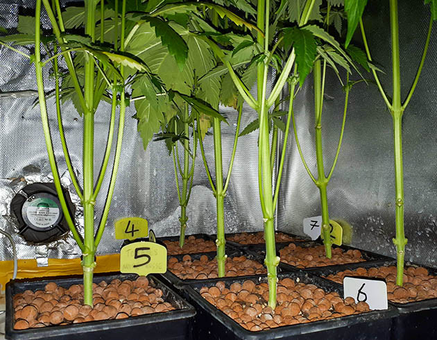 На третьей неделе на саженцах сформировались первые трехпалые листья, начал расти следующий этаж. Все растения выглядят здоровыми, никаких проблем не заметил. Малышки похожи друг на друга, развиваются одинаково. В боксе поднялась температура: днем до 28 °C, ночью до 21 °C.