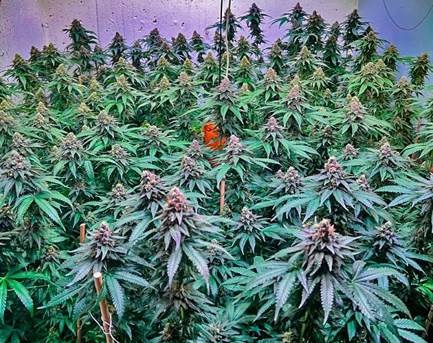 Растишки с удовольствием приняли такую подкормку и отозвались активной выработкой смолы. Шишки уже очень аппетитные, я не удержался и срезал одну на пробу. Скажу так, уже сейчас продукт на твердую 3+, а для кого-то, может, и на 4+. Ждать осталось недолго, трихомы уже начали мутнеть. В конце 12-й недели начал ставить подпорки для некоторых кустов, так как ветви стали сильно гнуться под весом шишек.