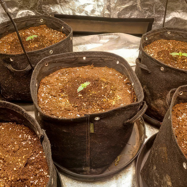 В этот раз я решил поднять пять кустов, хоть раньше гровил максимум три. Места должно хватить, даже для моих 25-литровых гроубэгов. Потратился на землю «Лайтмикс» (сказать по правде, мне просто отдали пару мешков, ну я и решил весь гров ехать на такой почве, чтобы у кустов были одинаковые условия). Добавил в нее немного перлита.