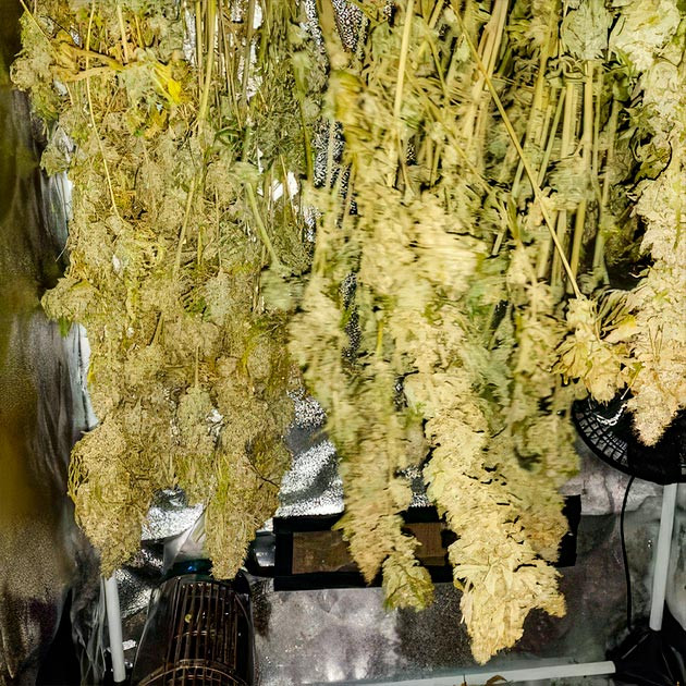 Харвест Runtz Punch занял у меня довольно много времени. Провозился почти целый день, удаляя листву, которую я практически не стриг весь гров. Сказать честно, я и на харвесте удалил её далеко не всю, так как мне просто не хватило терпения. Шишки получились приличного размера, плотные, очень маслянистые. Урожай собрал в моменте, когда трихомы только начали становиться янтарными. Можно было смело держать еще неделю, но я не слишком люблю эффект от «янтаря». Развесил кусты целиком в палатке и сушил неделю. Два вентилятора, которые стоят в боксе для обдува, работали круглосуточно. Разбирать высохшие кусты на шишки также пришлось несколько часов. Итоговый вес – 355 грамм без трима и некоторой части мелких бошек, только качественные соцветия, которые отправились на пролечку.