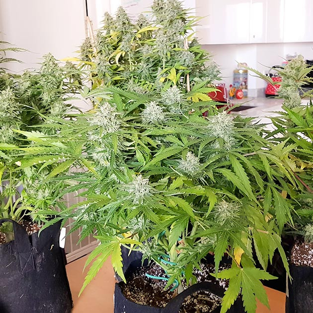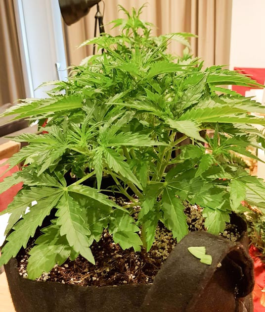 На данный момент я нахожусь на этом этапе. Решил для своего удобства переместить горшки в комнату, риск обнаружения минимален, но я все равно соблюдаю осторожность. Вторая неделя цветения протекает хорошо. Увеличил количество удобрений до 7 мл/л, воды растишки потребляют до 3 л в день. Шишки потихоньку разрастаются и становятся гуще.