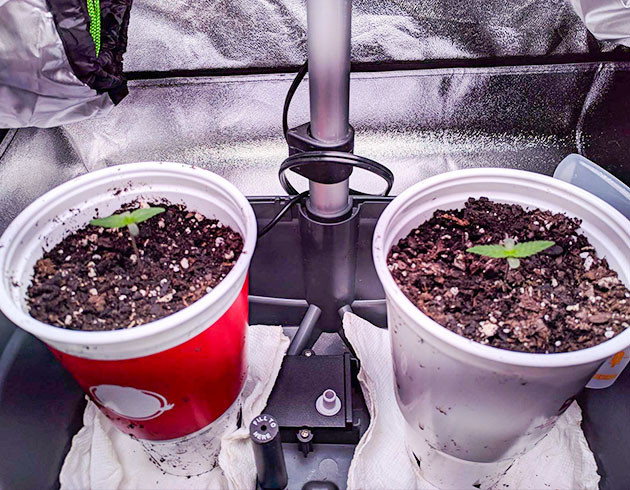 Как и планировалось, первую неделю саженцы стояли под светом Aerogrow на 30 Вт. Ничего особо примечательного. Растишки сбросили каски, начали формировать первую пару листьев.
