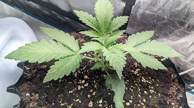 Продолжаю добавлять в воду для полива только Biobizz Root Juice в дозировке 4 мл/л. Субстрат, в который посажено растение, хорошо заряжен необходимыми элементами, лишних удобрений не нужно, идет хорошее полноценное развитие.