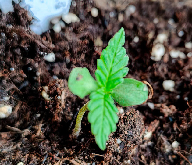 Начало выращивания для Titan F1 Auto было не из самых лёгких. Я решил проращивать семена в начале сезона, когда температура ночами опускалась до 5-10 °C и только днём было теплее. Погода, как всегда, оказалась непредсказуема, и такие условия испортили все мои планы. Однако, как только семена были замочены и появились первые корешки, я высадил их в 15-литровые тканевые горшки, наполненные грунтом «Терра Прета». С нетерпением ждал результатов, поставив их у себя в комнате на подоконнике до установления благоприятной круглосуточной температуры. Для досвета использовал обычную LED-лампу полного спектра на 150 ватт. Световой режим установил 13 часов света и 11 часов темноты. Этого было достаточно для того, чтобы растения начали развиваться, хотя и не слишком быстро.