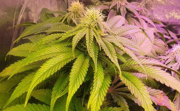 На данном этапе снова проявилась разница фенотипов: два из четырех кустов стали фиолетового оттенка. Уже желтеют и верхние листья, что говорит о скором харвесте. Запах стоит неимоверный, как на кондитерской фабрике. Продолжаю дефолиацию, снизу почти ничего уже не осталось. Под кустами стоит небольшой биколорный светильник для досвета, чтобы подсвечивать самые нижние шишки. На первом кусте (который самый большой) появились первые янтарные трихомы. Остается дождаться их на остальных трех кустах, и можно будет рубить.