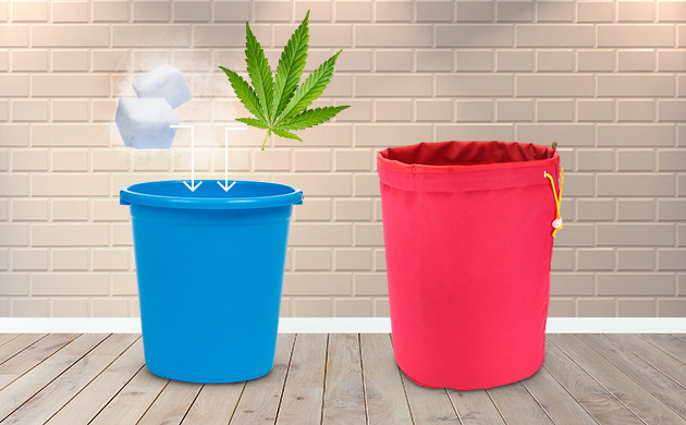 - Положите измельченный каннабис и сухой лед в чистое ведро, дайте этой смеси как следует охладиться.