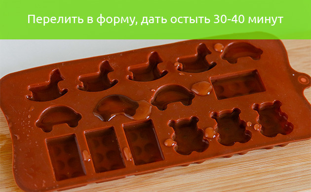 6. Вся смесь энергично перемешивается на протяжении 3-5 минут и, не снимая с паровой бани, разливается по формочкам при помощи пипетки или чайной ложки. Не обязательно покупать какие-то специальные формочки для мармеладок, можно просто влить смесь в большую силиконовую форму и нарезать на небольшие кубики после застывания.