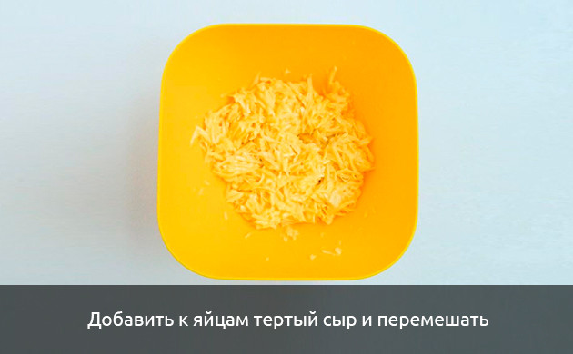 3. Добавьте к яйцам тертый сыр и перемешайте.