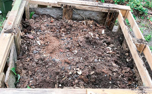 Смешайте отходы разного вида. Соедините «зеленые» материалы (кухонные отходы, скошенную траву) и «коричневые» материалы (сухие листья, картон) в сбалансированном соотношении 2 : 1. Кучи должны быть размером 1 х 1 х 1 м, чтобы температура внутри достигала 80 градусов Цельсия. Это обеспечит уничтожение патогенных микроорганизмов и наиболее быстрое разрушение растительного материала.