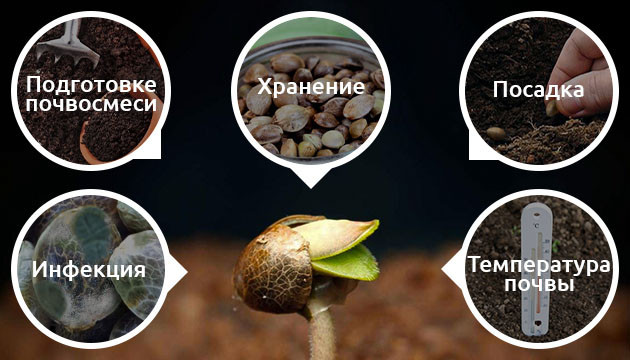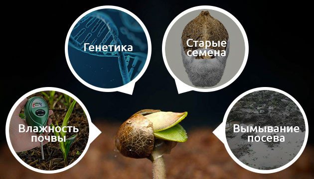 Гибель конопляных семян, как и любого живого организма, может быть обусловлена различными факторами. Большинство из них одинаковы как для индора, так и для аутдорного выращивания. Но есть и такие, что характерны только для определенной технологии культивации.