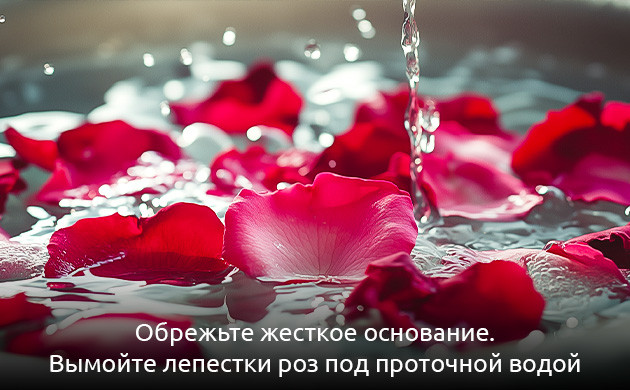 3. Вымойте лепестки роз под проточной водой, чтобы удалить все природные загрязнения, а также смыть токсины и загрязняющие вещества, которые могли быть нанесены на их поверхность во время выращивания.