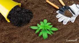 Более продвинутый метод – посадка в лунки (ямки) с заранее подготовленной почвосмесью. В данном случае преимущества высадки растения в грунт объединяются с плюсами посадки в горшках. Этот способ дешев, дает кустам достаточно места для развития корневой системы. Также растения получают возможность добывать из окружающей почвы влагу и дополнительные питательные вещества. Но самое главное заключается в том, что конопля изначально растет в сбалансированном покупном грунте, где имеются все необходимые ей элементы.