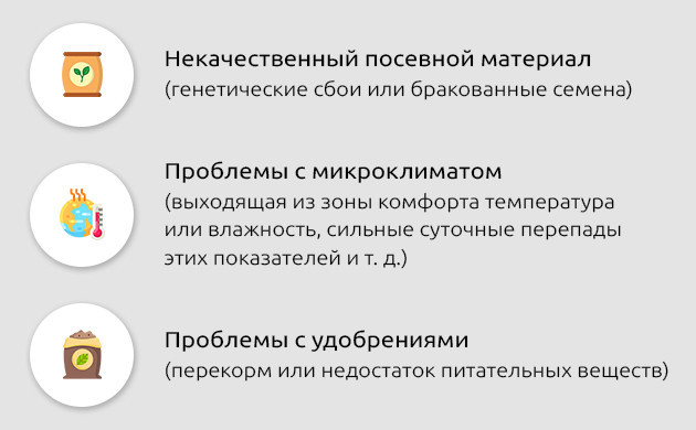 - некачественный посевной материал (генетические сбои или бракованные семена);