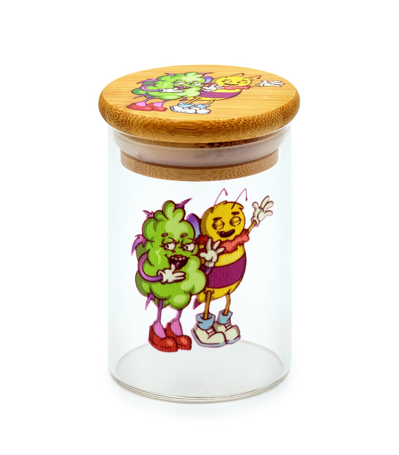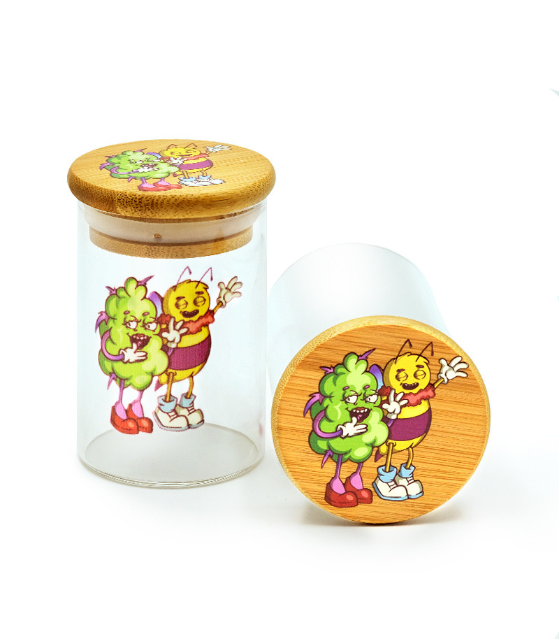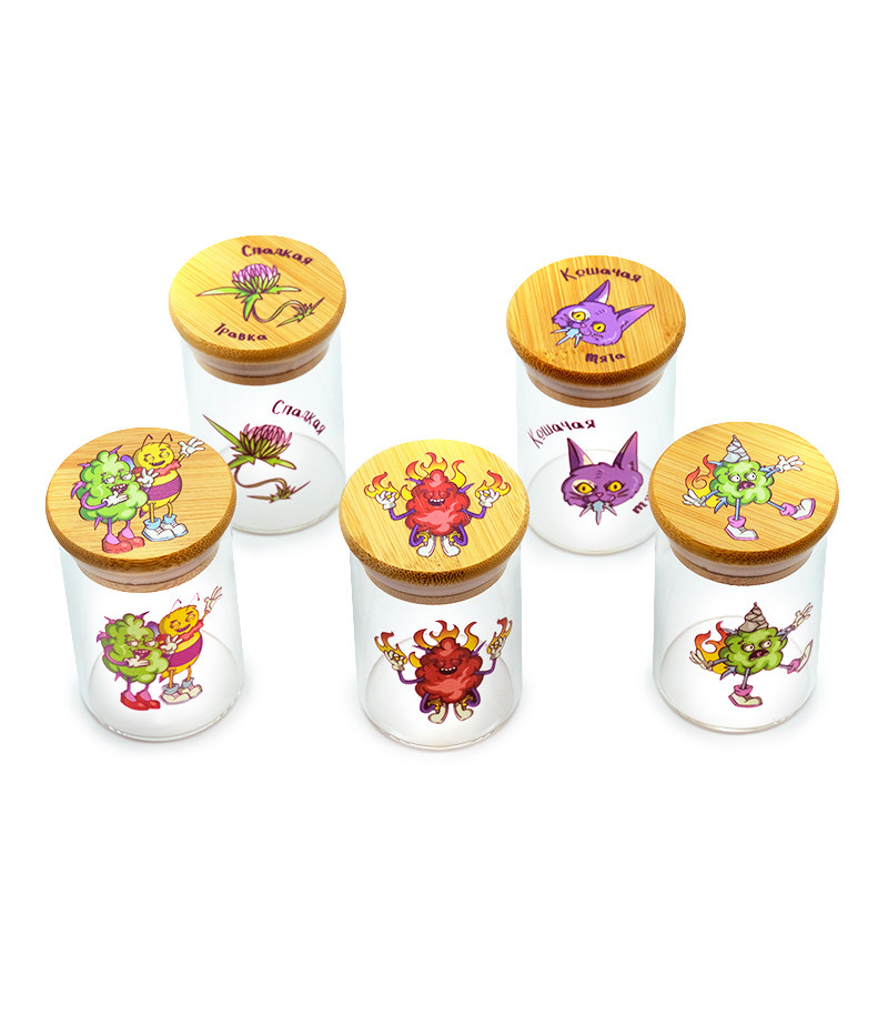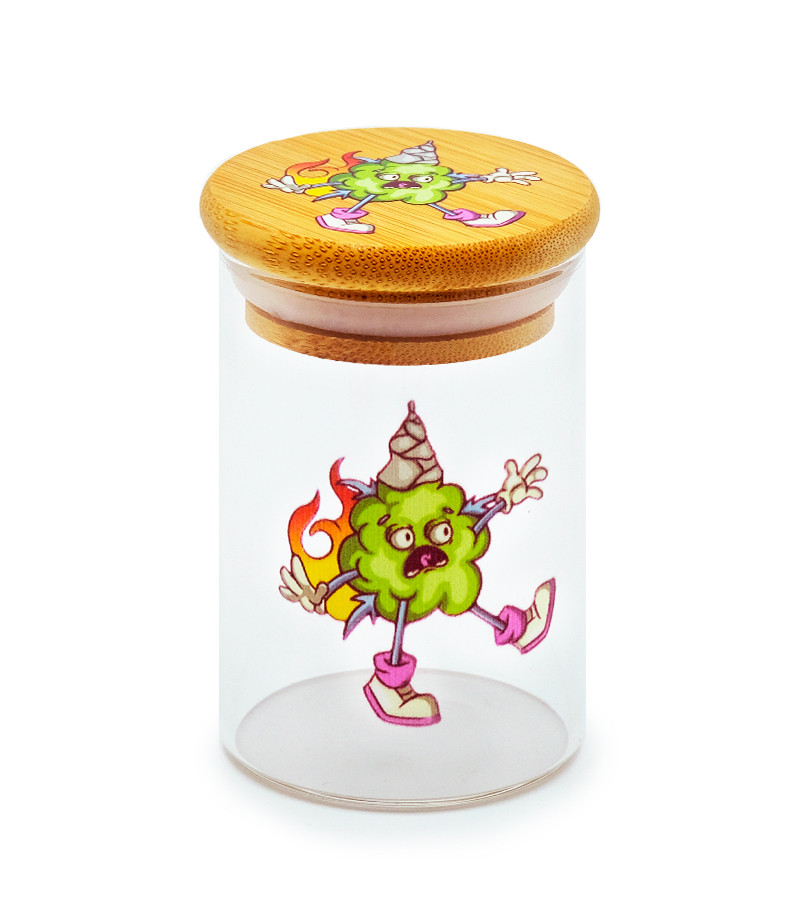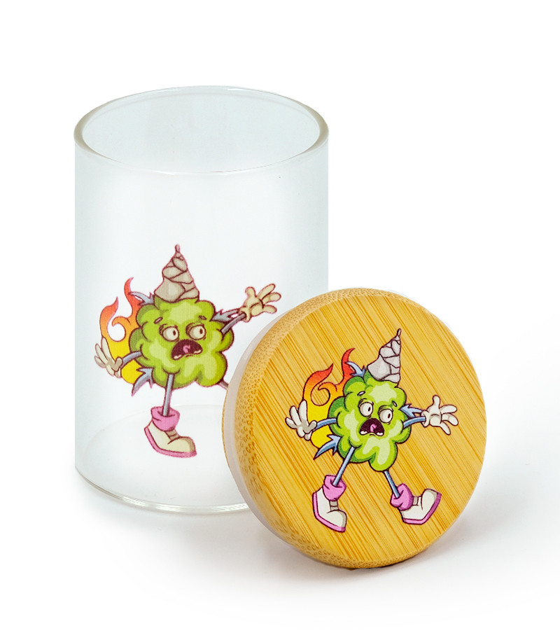 Баночка герметичная с принтом 7CH малая придётся как нельзя кстати для хранения небольшого количества шишек. Заприметили самый красивый бутон на кусте? Почему бы не выделить ему особое место. Баночка изготовлена из прочного стекла, а крышка – из бамбука. Ёмкость герметична и не пропускает запах.