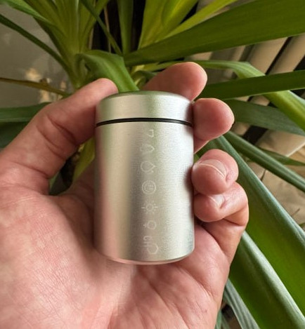 Контейнер металлический 7CH большой просто обязан быть у каждого гровера! Украшенный нашим фирменным лого этот с виду простой, но очень элегантный контейнер, не пропускает аромат хранящихся в нём шишек, приятно лежит в руке и вмещает приличное количество растительного материала.