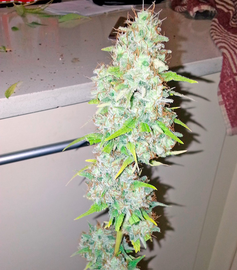 Внешне это объемный куст ростом 90-120 см, с широкими короткими листьями. Во время цветения источает приятный ненавязчивый аромат. Шишки крупные, твердые, как камень. Растишка обильно покрыта сочащейся смолой, которая с нее буквально капает. В аутдоре растение может достигнуть практически двух метров, и так же урожай отличается своим объем, если сравнивать с культивацией в помещении. Аутдорный урожай составляет почти 1 килограмм с куста. Индорный выхлоп 500 грамм, период цветения 55-60 дней.