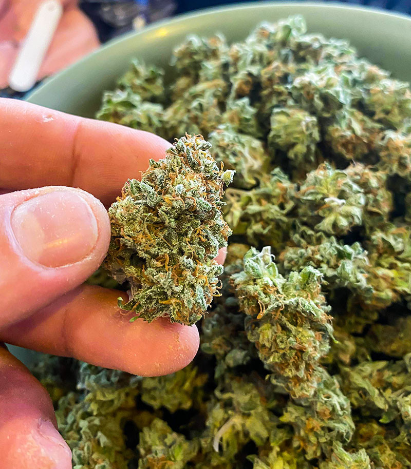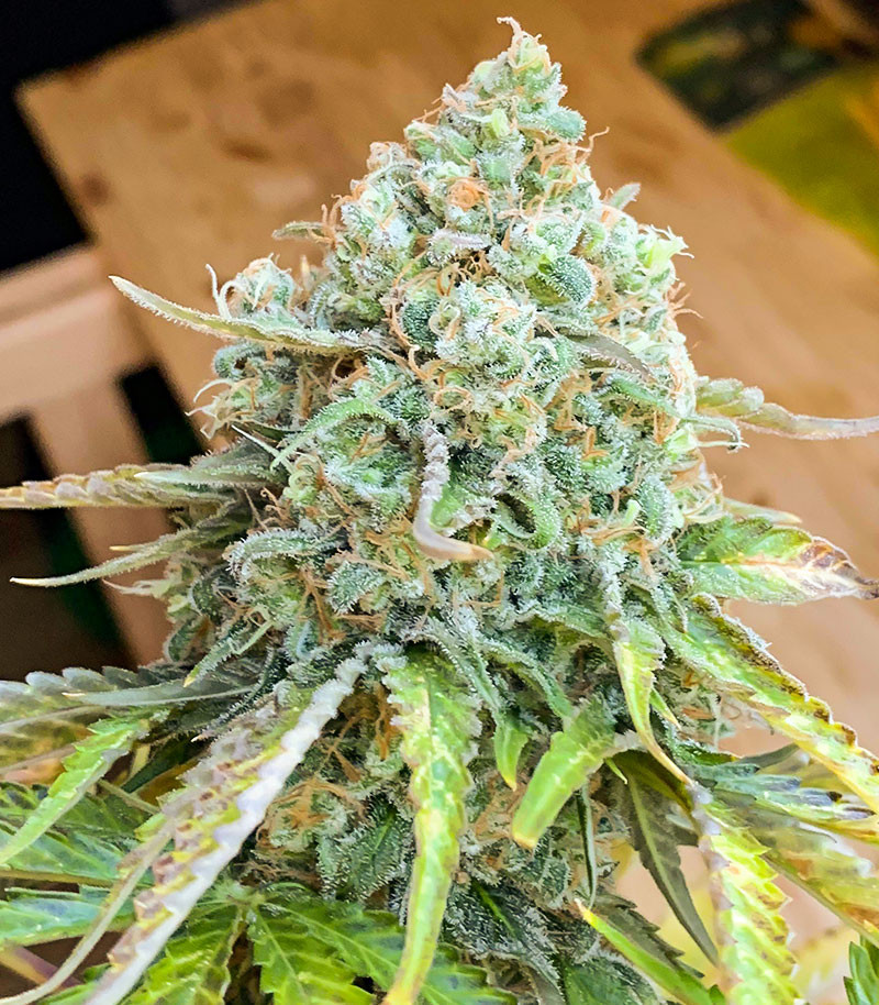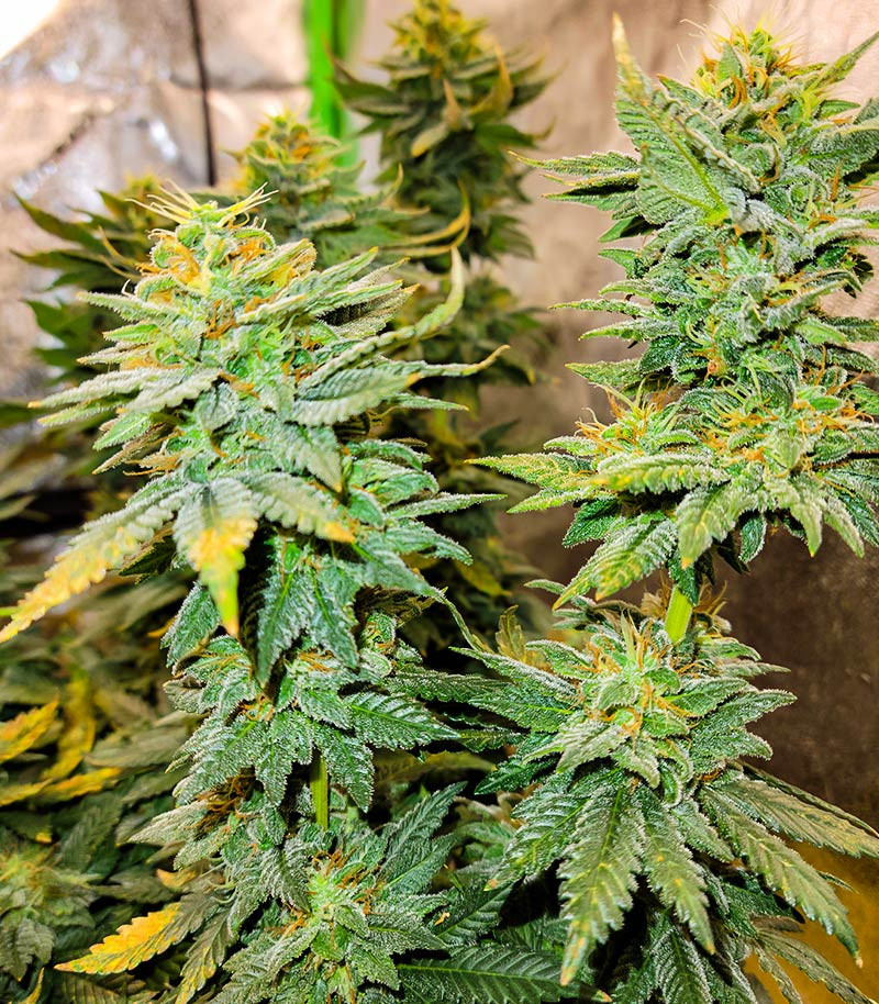 Во время выращивания рекомендуется поддерживать температуру от 18 до 26 градусов. Растения больше предпочитают прохладные условия, нежели жару. Они не станут сильно стрессовать при повышении температуры до 28-30 градусов, но именно прохлада в комбинации с хорошим обдувом поможет реализовать природный потенциал. Если все сделать правильно, то уже спустя 7-8 недель цветения можно будет собирать долгожданный урожай. Производительность в помещении достигает показателя в 450-550 г/м², а в открытом грунте каждый куст принесет владельцу до 500-600 грамм. К харвесту соцветия покрываются толстым слоем смолы, среди которой, словно огненные вспышки, располагаются ярко-оранжевые пестики.