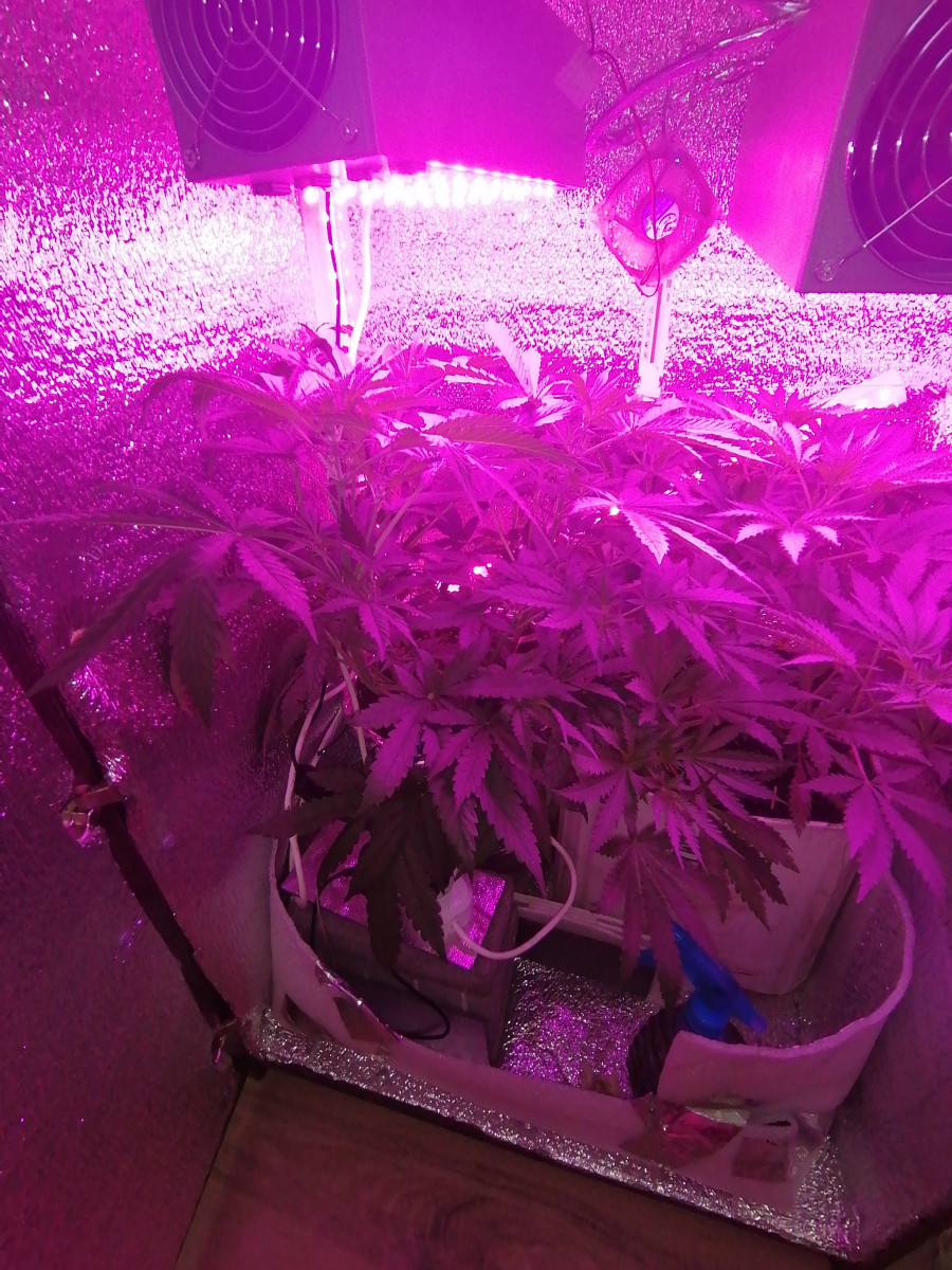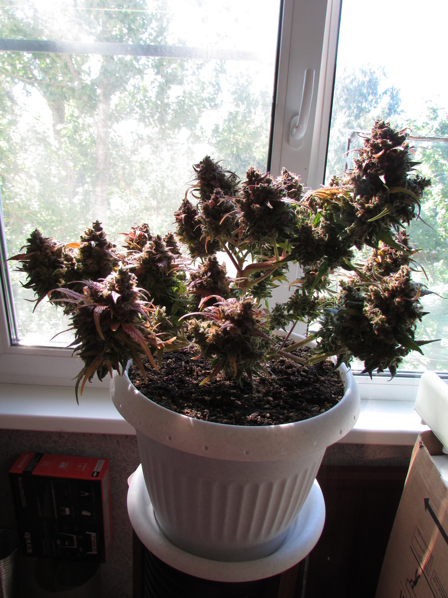 Кустики получились маленькие 35-45см (но это я главные колы подвязывал), но соцветия плотные, жирные.Растил под светодиодами.Режим 18/6 весь цикл.Были и косяки, но растишки пережили всё нормально.Действительно прощают многие ошибки начинающих Гроверов ;)