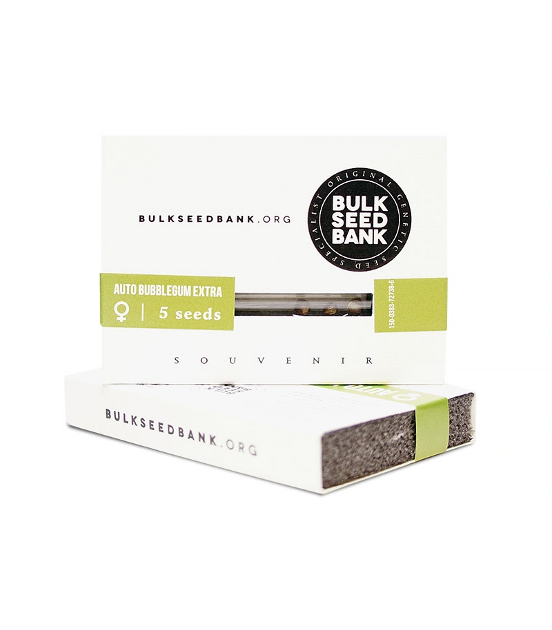 Сорт Auto Bubblegum Extra выведен селекционерами в штате Индиана, США. Он попал в Голландию в виде клона, после чего был успешно использован в коммерческих целях. Гибрид стал хитом в кофешопах благодаря запоминающемуся насыщенному аромату и убойному эйфорическому воздействию. Автоцветущая феминизированная вариация Bulk Seed Bank была получена путем скрещивания сорта Indiana и сатива/индика/рудералис гибрида.