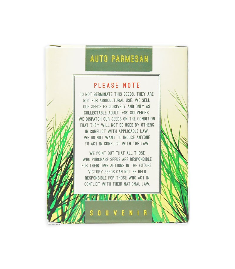 Сорт конопли Auto Parmesan от Victory Seeds был разработан голландскими селекционерами после головокружительного успеха одноименного фотопериодного растения Original Parmesan, путем скрещивания его со специально подобранным мексиканским рудералисом. Он перенял от оригинала все его органолептические качества.
