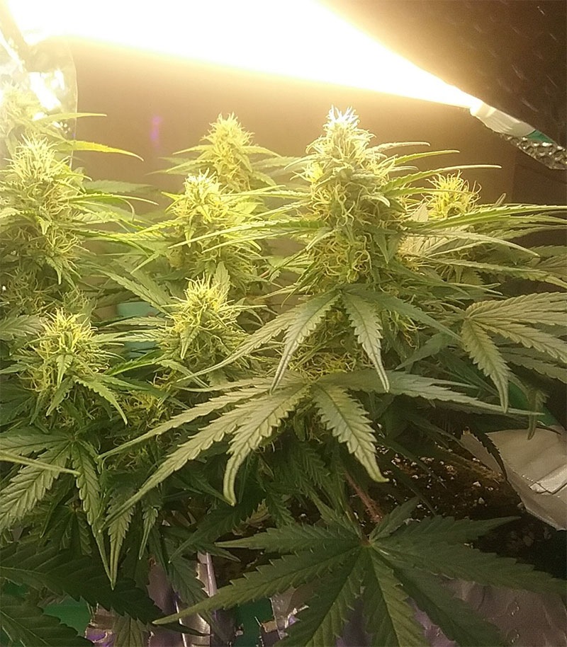 Для освещения лучше всего подойдут лампы ДНаТ и LED. Рекомендуемый диапазон мощности – 250-600 Вт. Если исходить из расчета на 1 м2, то это 600-800 Вт. Температуру в боксе лучше поддерживать на уровне 24-28 градусов. Горшок брать на 15-20 л. Влажность в период цветения желательно снизить до уровня 40-50%. И последнее – запах. Он очень стойкий и сильный, поэтому без угольного фильтра гровить не рекомендуется.