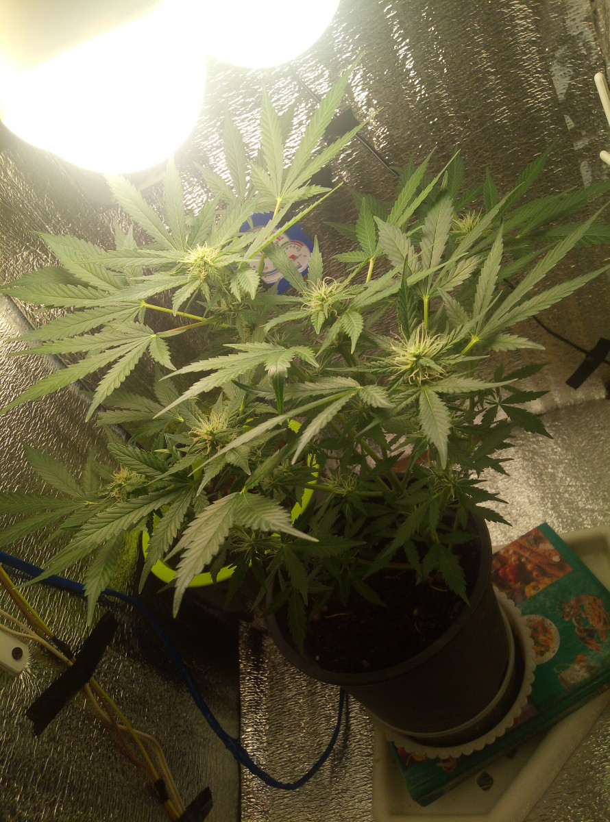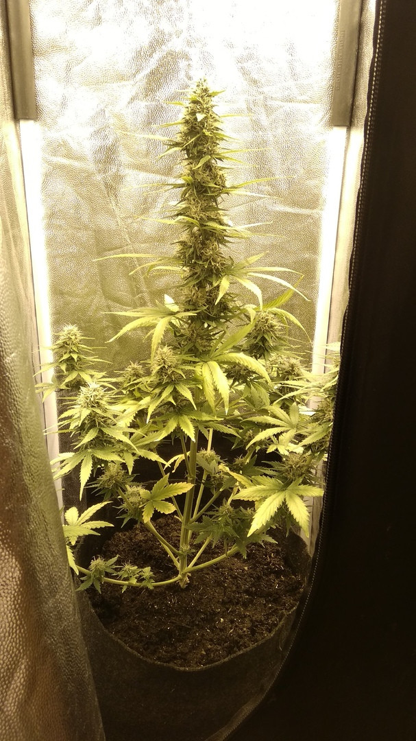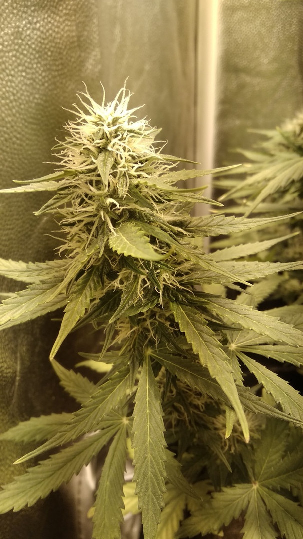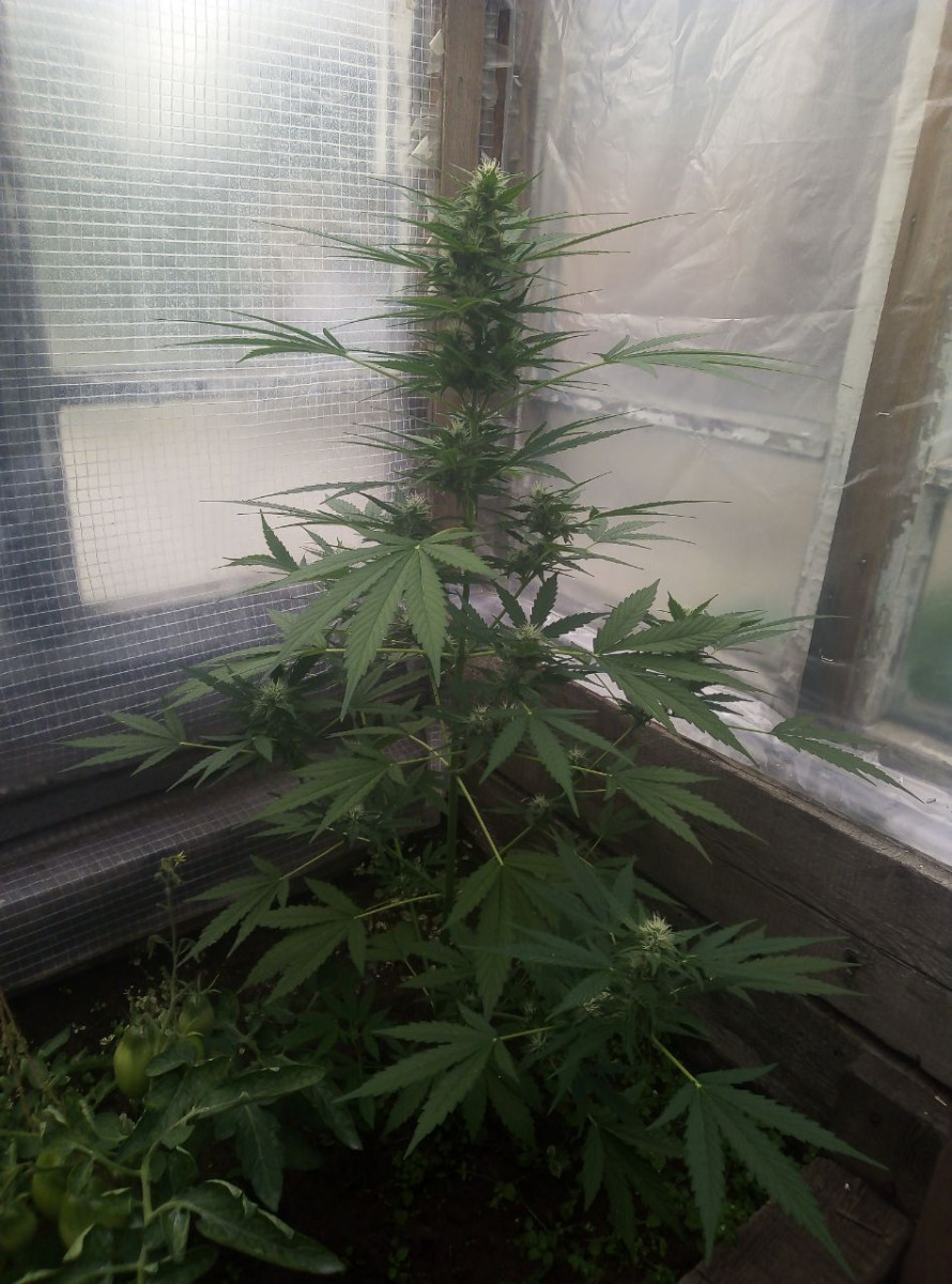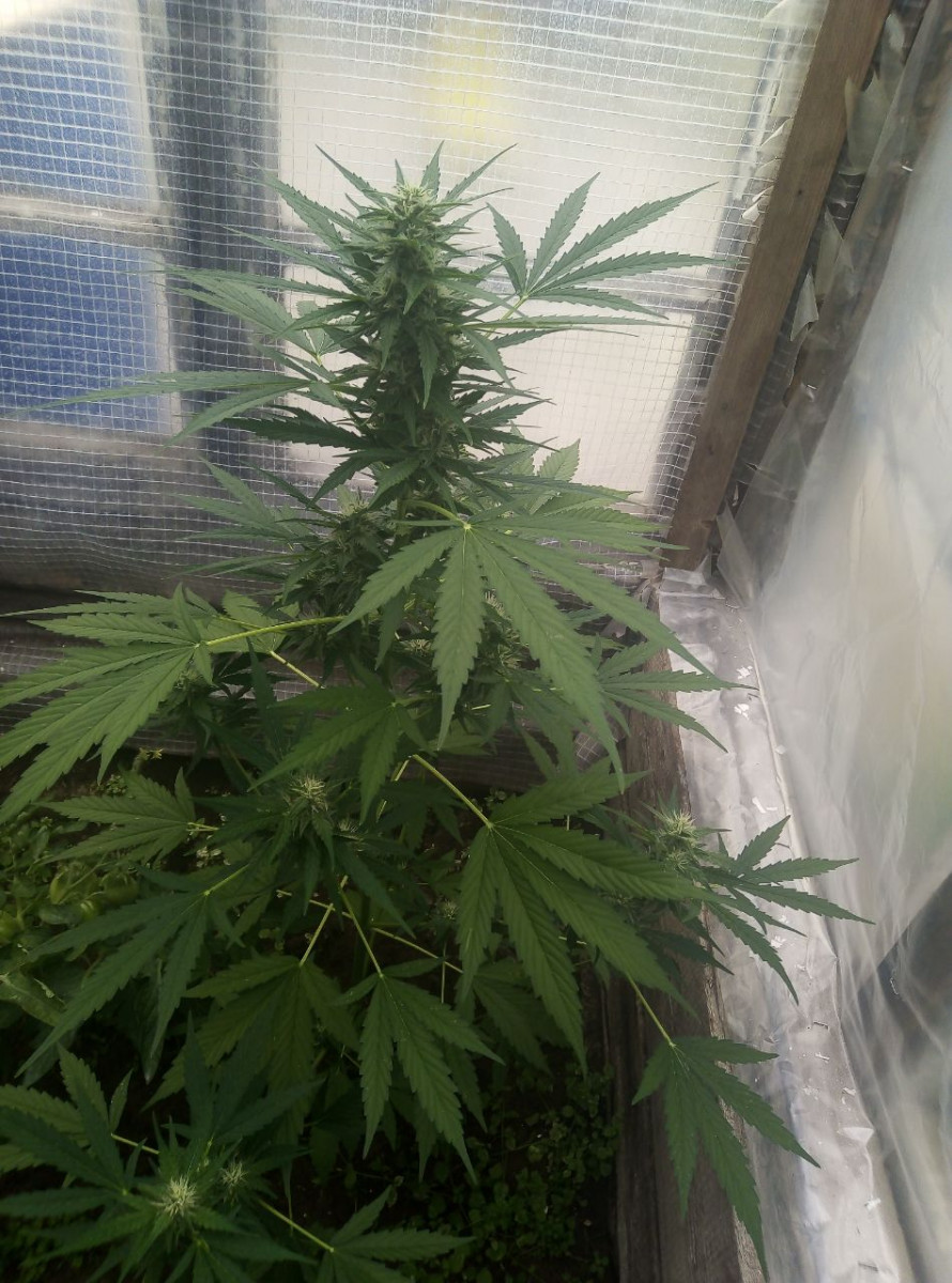 Выращивал в районе Крайнего Севера, в теплице, в условиях короткого лета, поэтому, конечно, довести до конца не удалось. Растишка просидела 76 дней, но не вызрела. Климат. Поливалась растиха чистой водой, удобрения - коровий навоз. Никакой химии. Перед харвом заплесневела, потому что приходилось держать в закрытой теплице, опять же из-за климата. На снимках за неделю до харвеста.