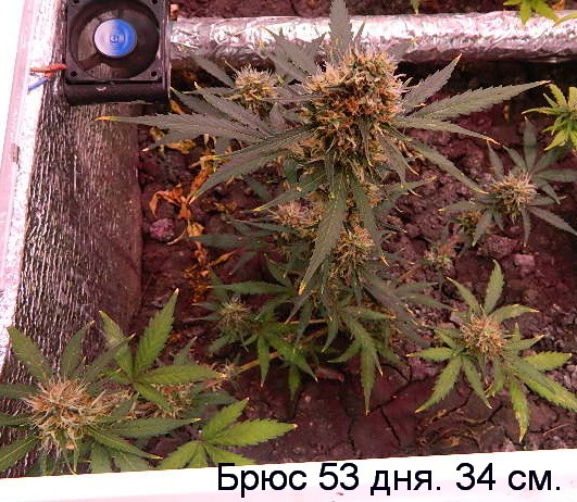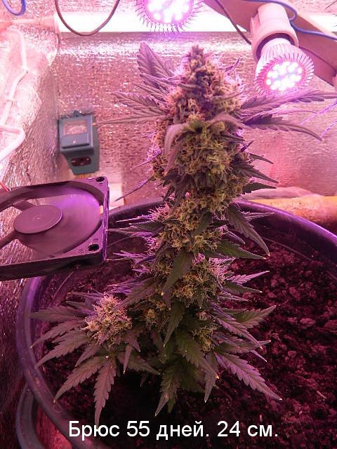 Второй гров Брюса. Ну что ж начнем. Первый вырос лилипут Всего 24 см (одна сплошная шишка). Второй вырос по минимуму от заявленного. Приход хороший. Держит долго и стабильно, часа два. Вкусный. Думается хорошо, разговаривается тоже. Можно и в одиночку, и в компании. Если температура не выше 30, запах не сильный. Удобрения много не любит, четвертая часть от положенного, вместе с поливом, со второй недели, перед гровом сутки темноты. Лампы светодиодные матрицы общей мощностью 300 ватт.