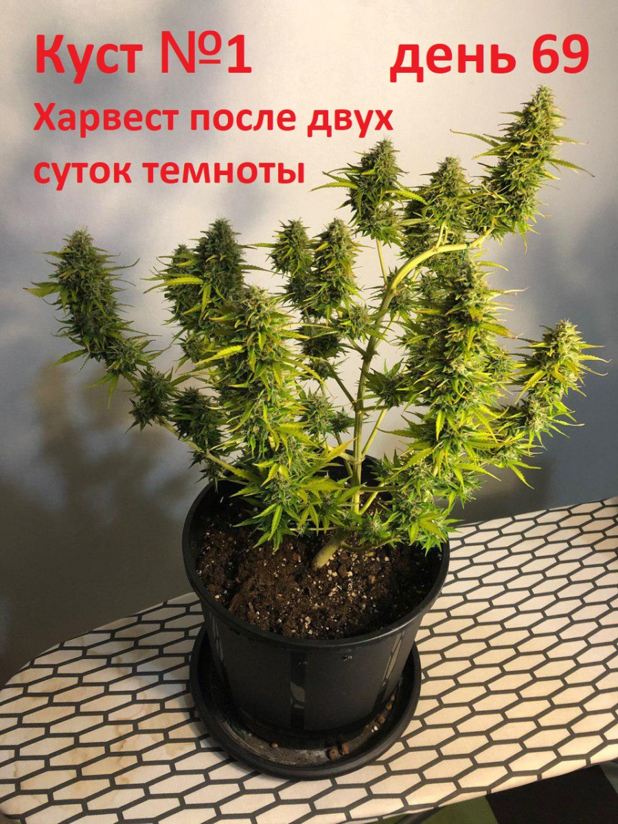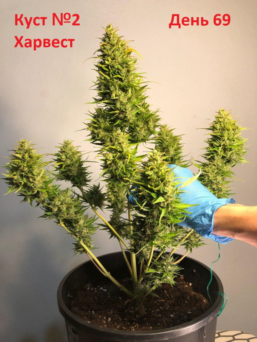 В итоге с куста собрал примерно 76 гр сухих, к сожалению фото харвеста не сохранил. При сборе урожая заболела голова, очень сильный сканковый запах в конце цветения,от которого невольно накуриваешься. Приходилось пару раз прерываться идти окно открывать, чтобы немного проветриться.