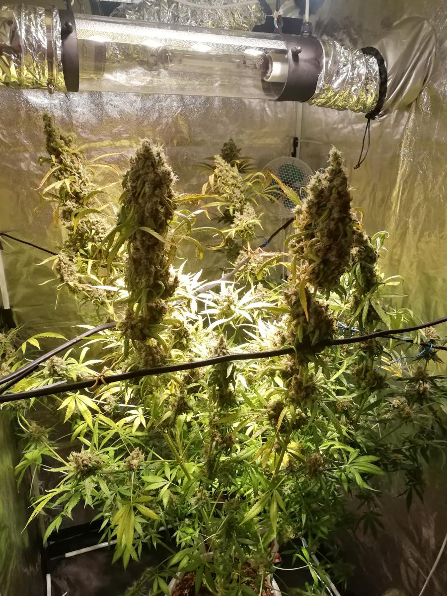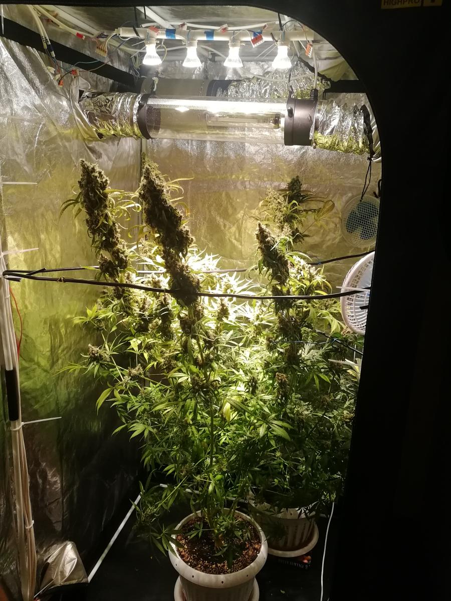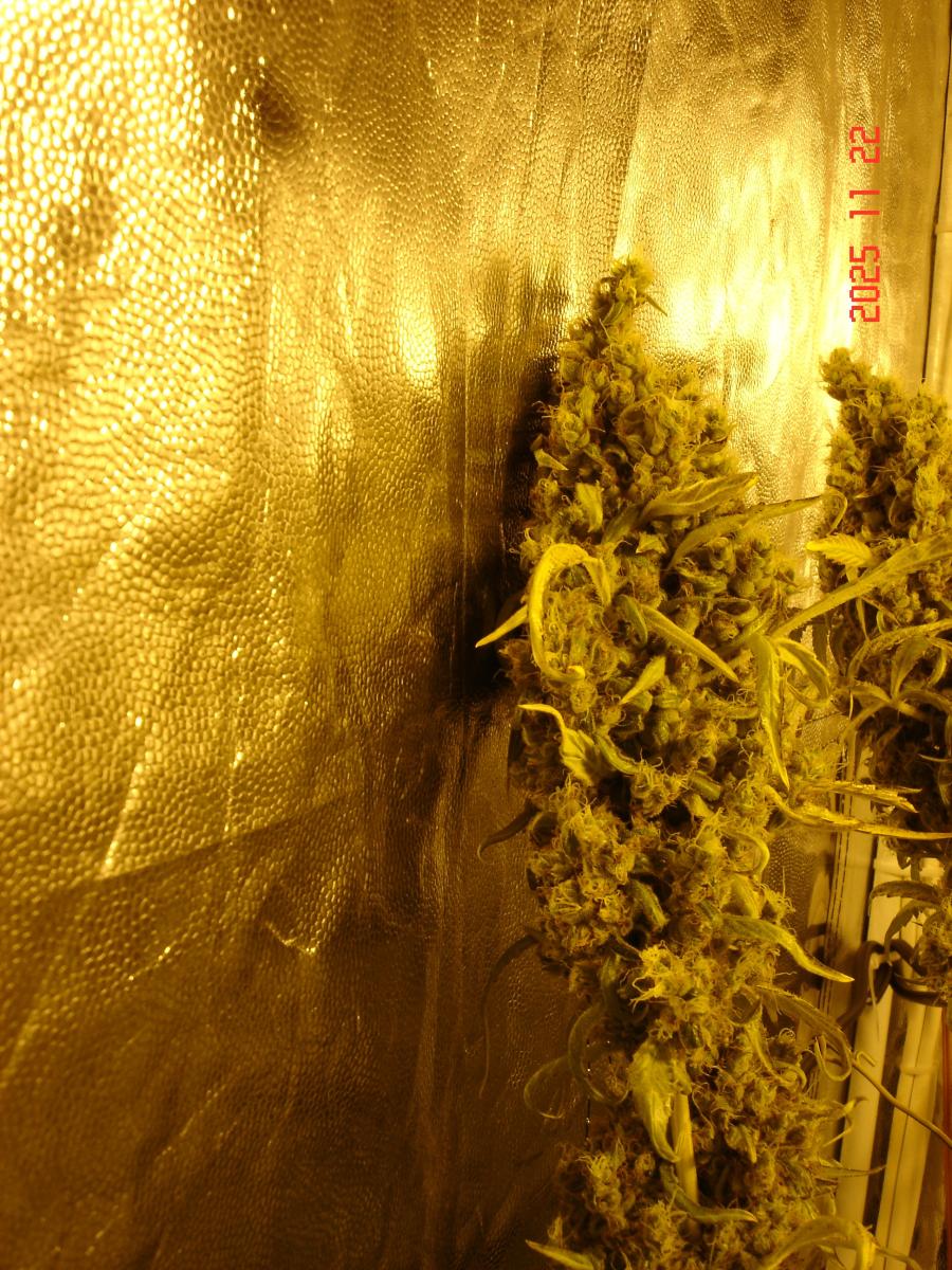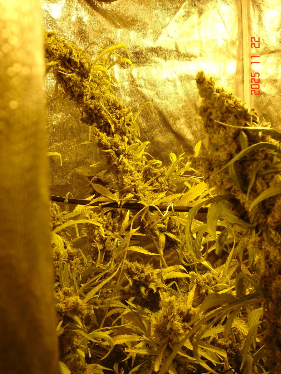 Проросла через 3 года хранения в холодильнике. Это бонус от Семяныча. 28 дней веги на 8 бытовых лед лампочках по 20 ватт. Кормил агриколой для орхидей ещё 3 недели после перевода на 12/12. Также давал гумат калия, когда сформировались бошки, перешёл на мфк, также гумат периодически и 2 раза давал сульфат магния, на последней стадии ещё патоку. На цвете включил ДНАТ 600 на все время.