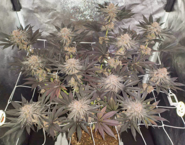 Образцово-показательный гров на органике, отличный сорт. Вега 6 недель, никаких проблем, активное развитие, вообще не к чему придраться. Затем перевод в режим 12/12. А всего 13 недель, и после сушки и тримминга 120 сухих грамм отменных шишек. Из-за особенностей генетики растение и шишки практически черные, словно больные. Нео они такие и должны быть, и они офигенные.