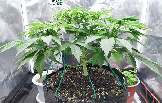 Растил в кокосовом субстрате сначала в эйрподах, а затем в тканевых горшках по 11 литров, под LED-светом 480 Вт фулл-спектр вега/цвет, с системой автополива. Проращивание, высадка, первые недели – вообще все как по нотам. Первый топпинг в 3 недели, прошел как по маслу. Рост кустиков даже активизировался, так что в конце 4 недели я провел второй двойной топпинг на каждом кусте.