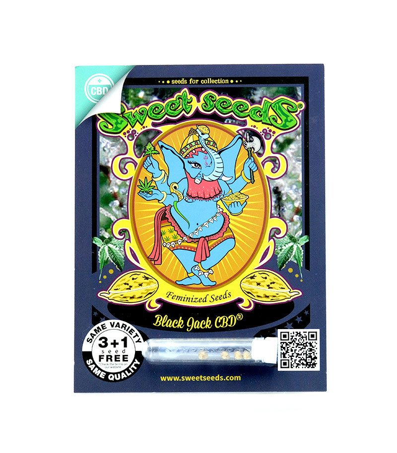 Сорт конопли Black Jack CBD от испанского сидбанка Sweet Seeds является богатой на КБД вариацией известного и общепризнанного одноименного растения компании. Растишка представляет собой гибрид индики и сативы. На долю каждого вида каннабиса приходится по 50% генов. Для его создания селекционеры скрестили оригинальный сорт с богатым на каннабидиол клоном, относящимся к дизельному семейству. Соотношение ТГК к КБД в готовом продукте стрейна составляет от 1:1 до 1:1,5, что делает его идеальным для использования в терапевтических целях для лечения различных заболеваний и устранения симптомов.
