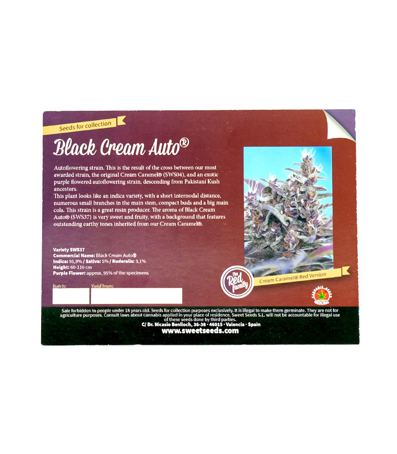 Семена сорта Black Cream Auto fem (Sweet Seeds) Испания, Феминизированные, Автоцветущие, ТГК-15 - 18