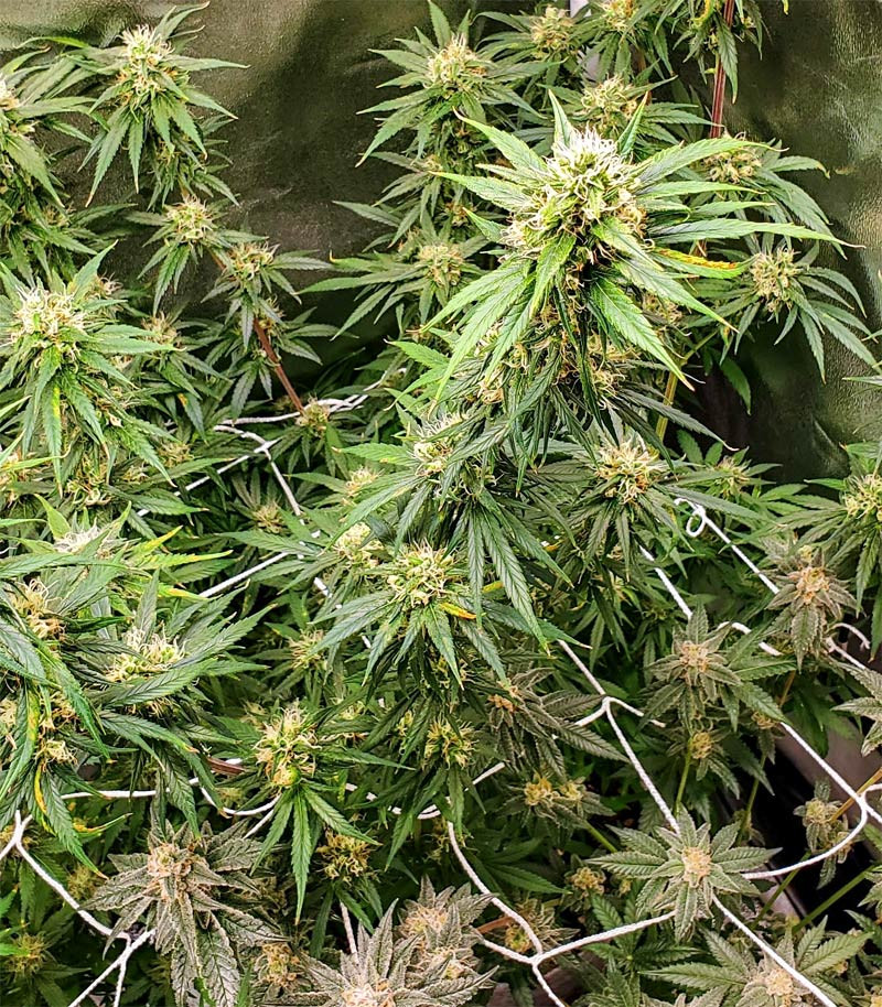 Правильный уход за марихуаной позволяет получить порядка 600-800 г ароматных соцветий с квадратного метра. В аутдоре смело можно ожидать до 1500 г с каждого куста. В индоре стадия цветения длится 63 дня.