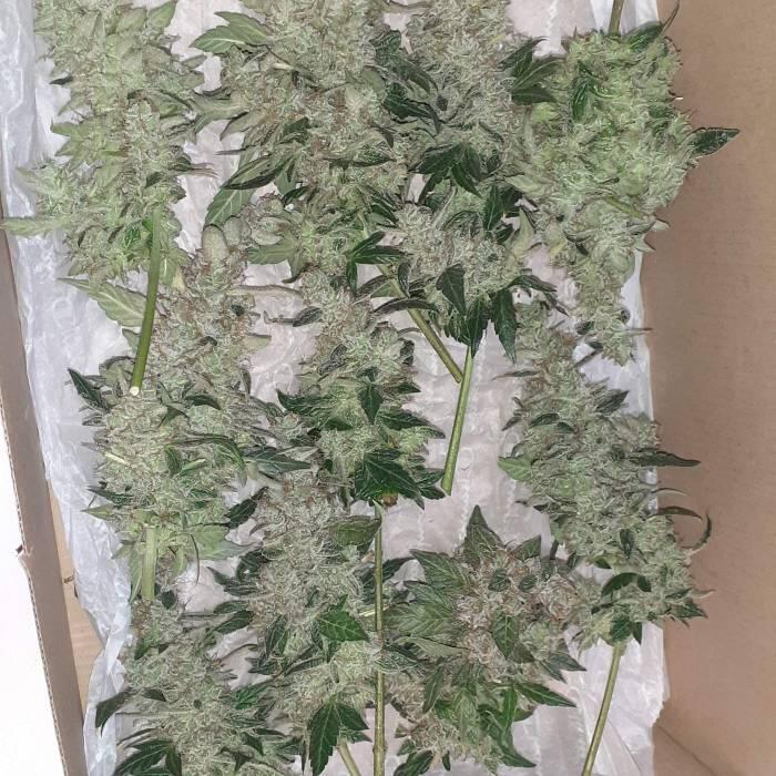 Харвест был на 86-й день. Трихомы уже достигли оптимального соотношения мутных к янтарю 50/50. Общий урожай 221,95 г. Легко выращивать благодаря крепкой генетике.