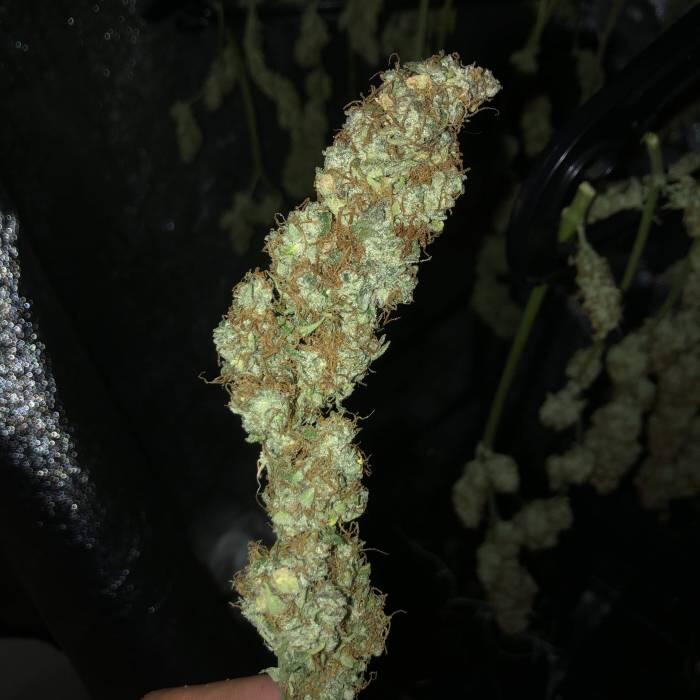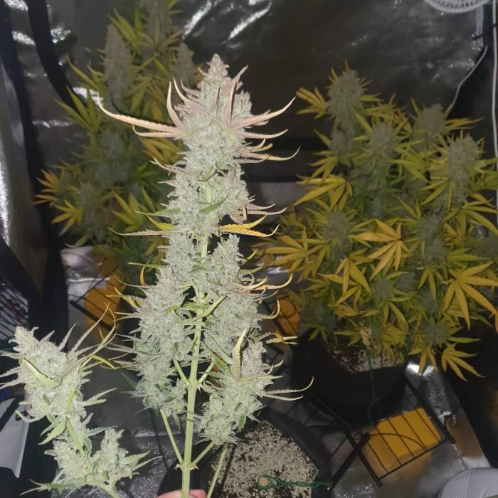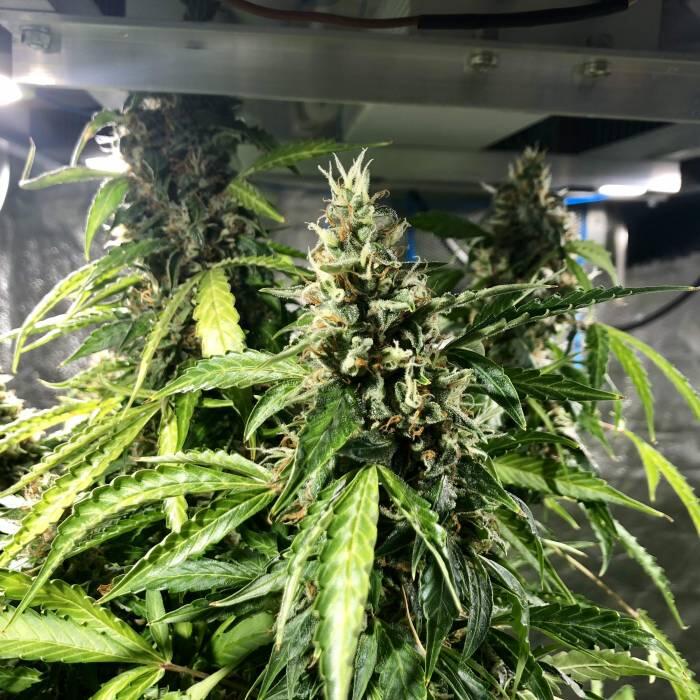 Чертовски огромный куст как для автоцвета, и ему потребовалось больше времени, но это не передать как он вырос – настолько высоким, что мне пришлось убавить свет до 164 ватт. Соцветия длинные и буквально жирные, пахнут голубым сыром, по сути, так же, как и фотопериодная родительская генетика.