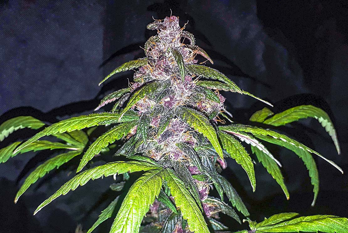 Растёт уверенно. В одной грядке с Six Shooter auto, Dulce de Leche auto, и Super Critical. Все остальные на шаг позади. Да и цвет бошек красивый-фиолетовый