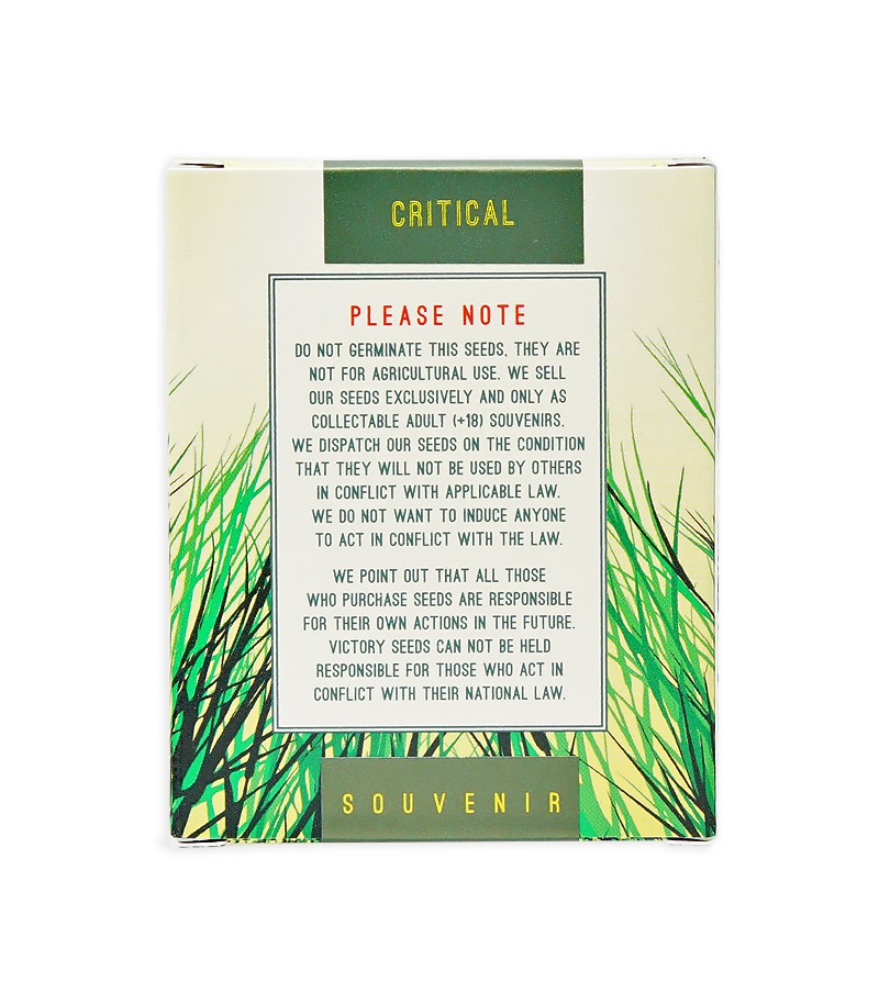 Семена сорта Critical fem (Victory Seeds) Нидерланды, Феминизированные, Фотопериодные, ТГК-18