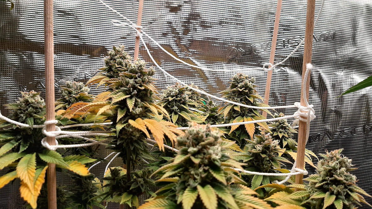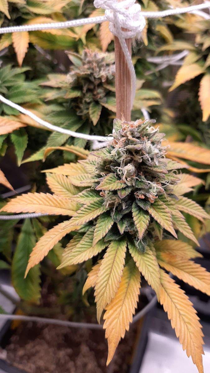 Я поместил эти растения на тачку. Так что можно было заставить их зацвести гораздо раньше, чем при естественном освещении. В 8 вечера я отвозил их в тень и в 8 утра вывозил. Таким образом, урожай был примерно на 1,5 месяца раньше, чем в естественном цикле. Из-за утренней влажности некоторые бутоны начали плесневеть. Поэтому мне придется собрать их немного раньше.