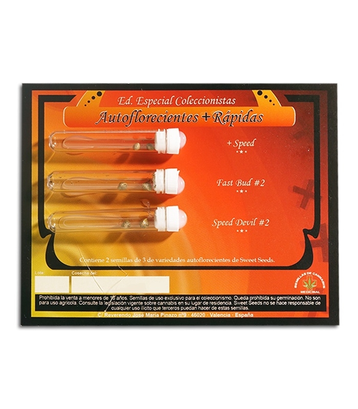 Семена конопли Autoflorecientes + Rápidas – это набор разных сортов в одной упаковке. Такой микс даёт возможность оценить работу селекционеров сидбанка Sweet Seeds и вырастить отличный урожай у себя в саду или в условиях открытого грунта. В коллекции представлены автоцветущие сорта марихуаны.