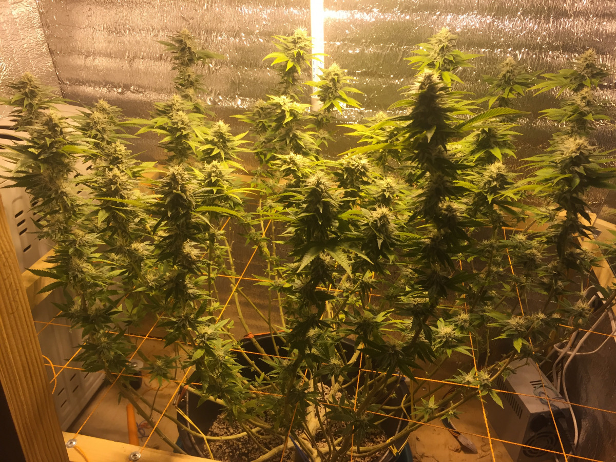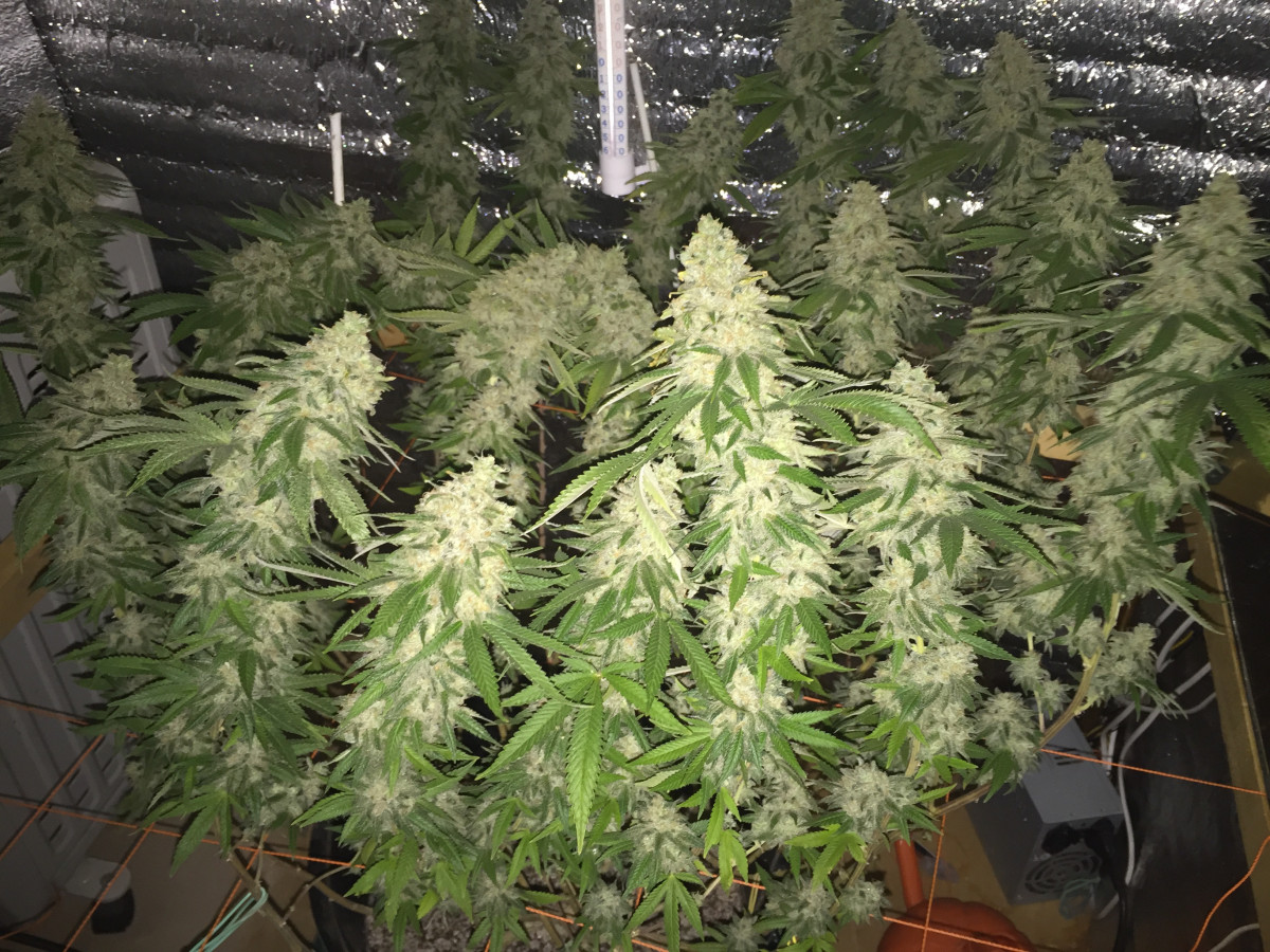 Мощная генетика, много веток подходящих для клонирования... на протяжении всей веги стойко выдерживал стрессы из-за тренировок: 3 раза резанул макушки получилось 8 кол и под ScrOG это все дело запустил...