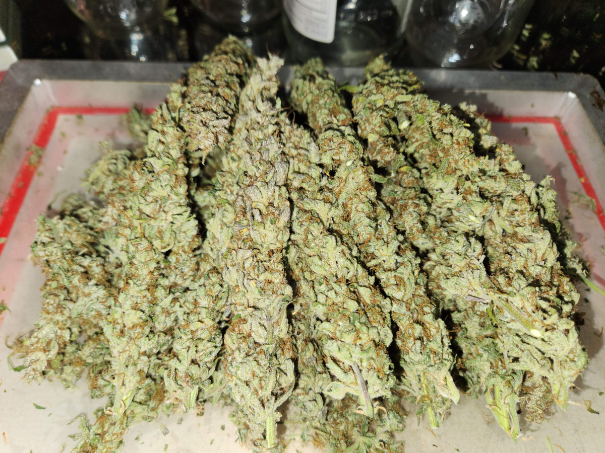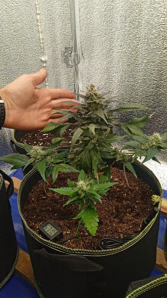Всего 1 растение в горшке емкостью 3 галлона, и она дала мне чуть более 85 граммов или 3 унций. Она была выведена для сильной морозности и большого количества развивающихся бутонов, кем бы она ни была, она пахнет великолепно.