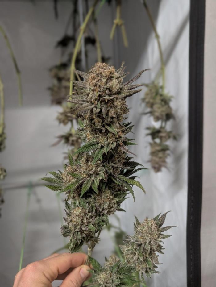 Суперский сорт! Только посмотрите на эти огромные шишки, которые еще и божественно дурманяще благоухают! И это при том, что растишки были небольшими из-за экспресс-грова – всего 56 дней, на 57 день харвест. Веги всего 3 недели дал им, а дальше на цветение.